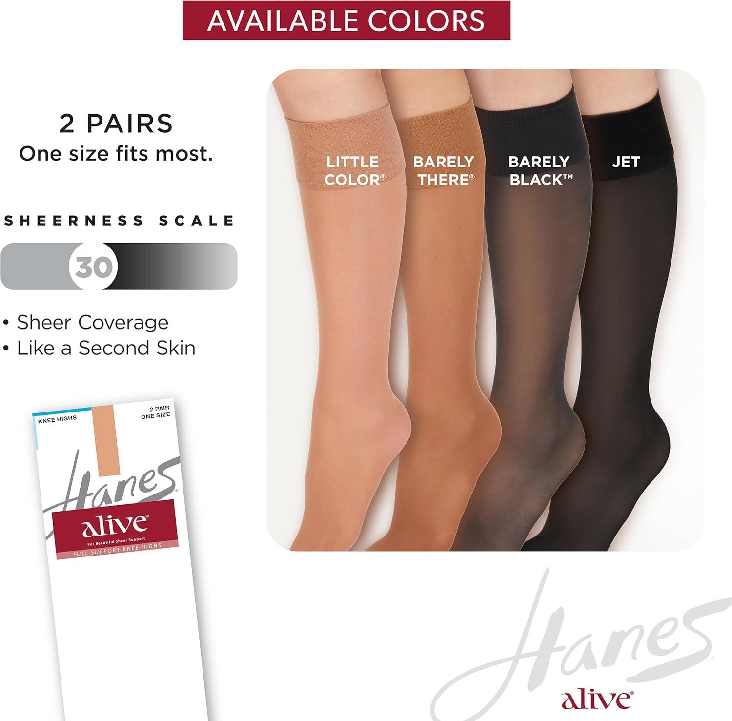 Hanes Alive Women’s Full Suppor, Sheer Toe, Knee High Sheers(Jet)