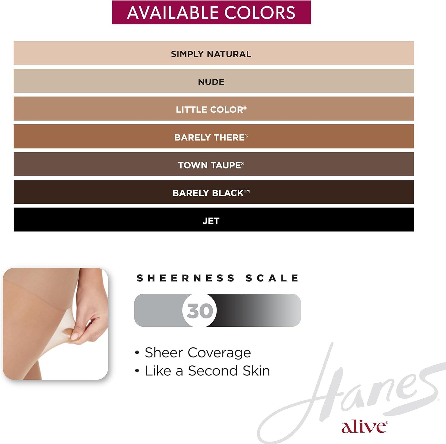 Hanes Alive Women’s Full Support, Control Top, Reinforced Toe Pantyhose(Little Color)