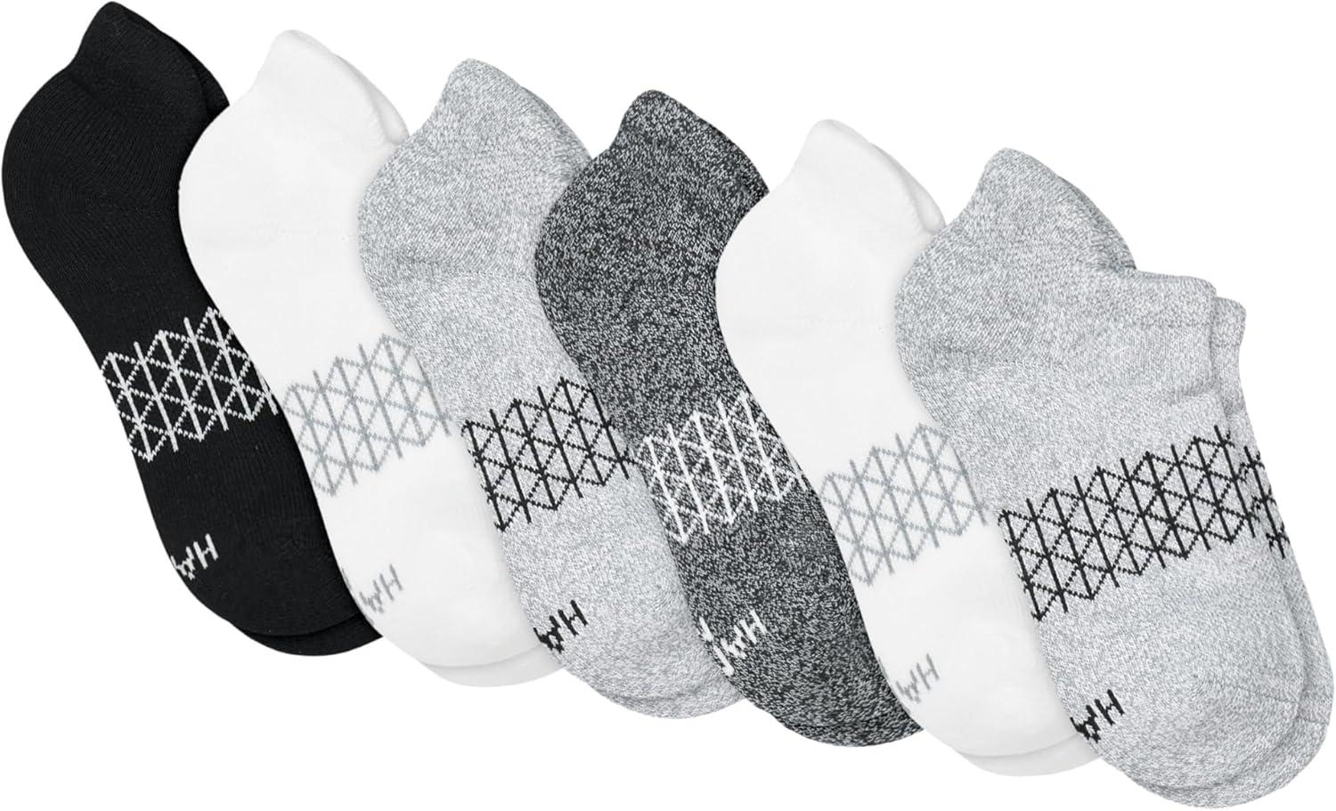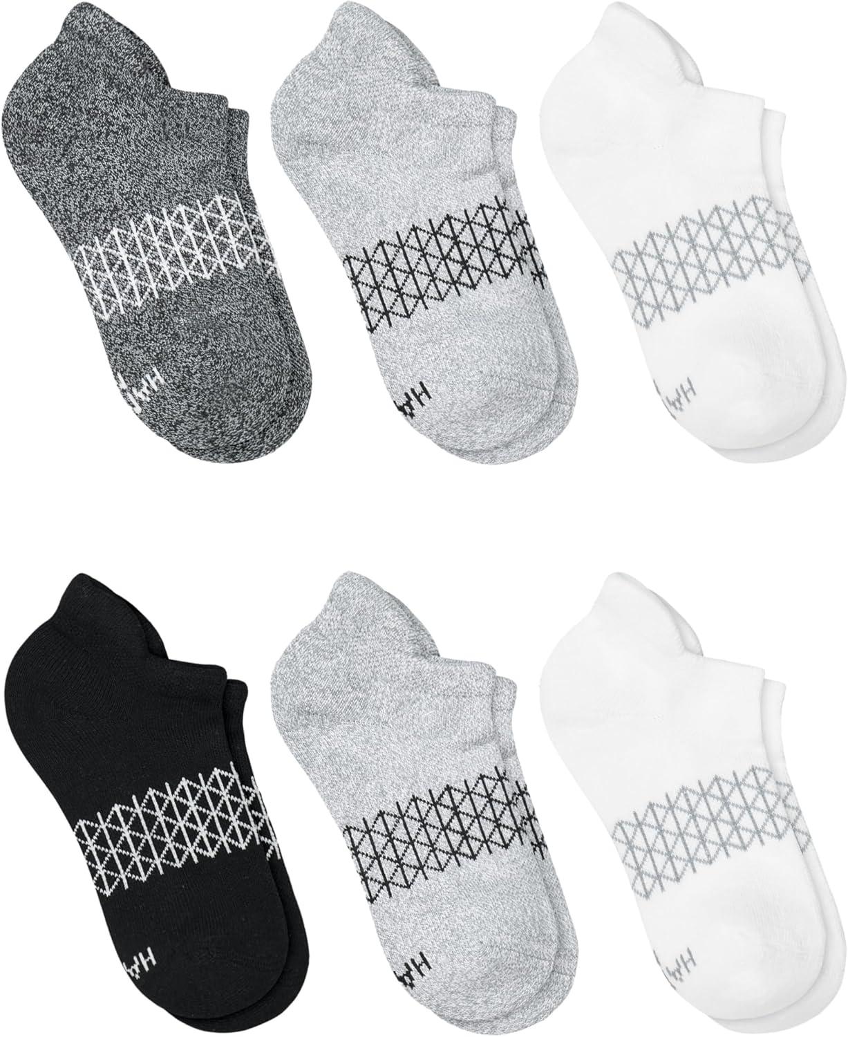 Hanes boys Cushioned No Show Tab Socks, Absolute Active Heel Shield No Show Socks for Boys, 6-pairs(No Show Heel Shield – Grey/White)