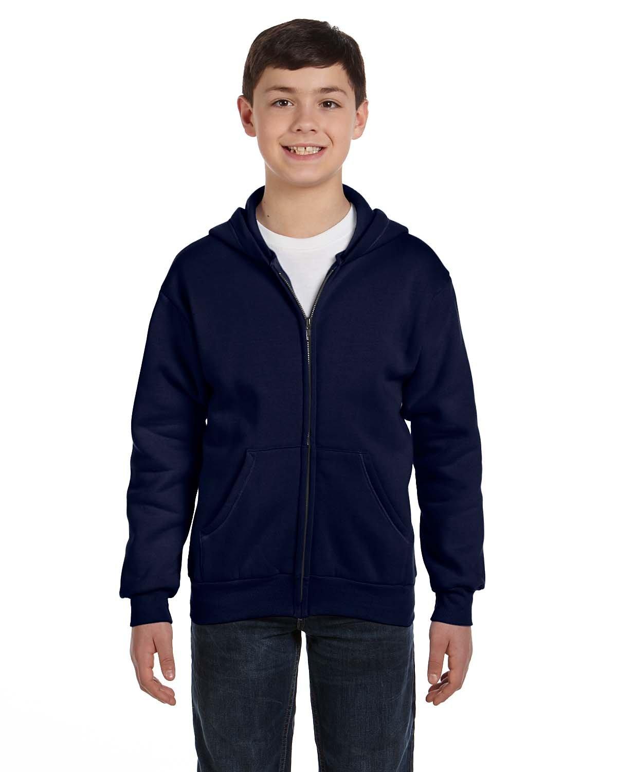 Hanes Boys’ EcoSmart Full Zip Hooded Jacket, Black, Large(Navy)