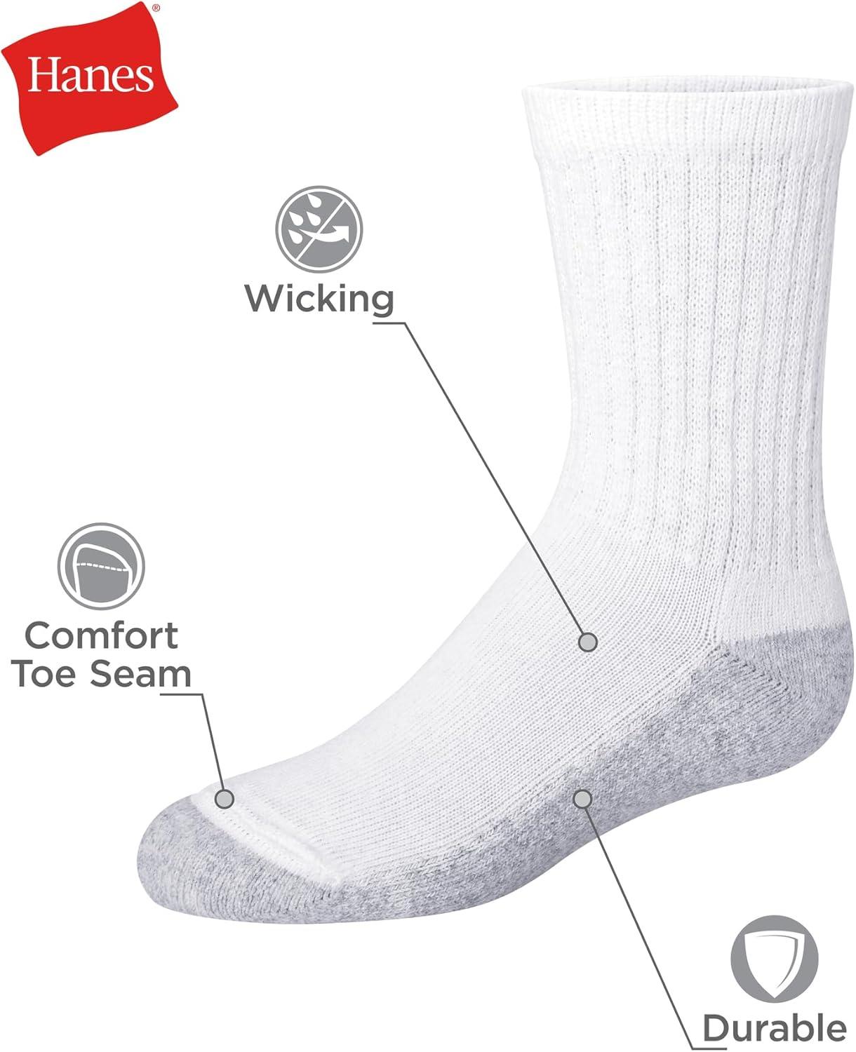 Hanes boys Uniform Crew Socks, Moisture-wicking Socks, Cushioned Foot Bottoms, 10-pairs(White – 12 Pack)