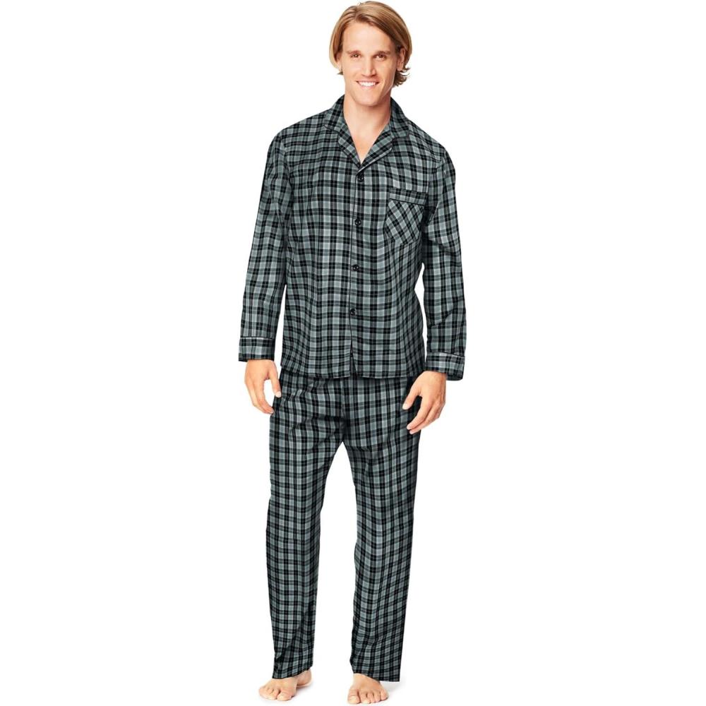 Hanes Men’s 100% Cotton Flannel Plaid Pajama Top and Pant Set, Long Sleeve Button Down(Gray/Black)