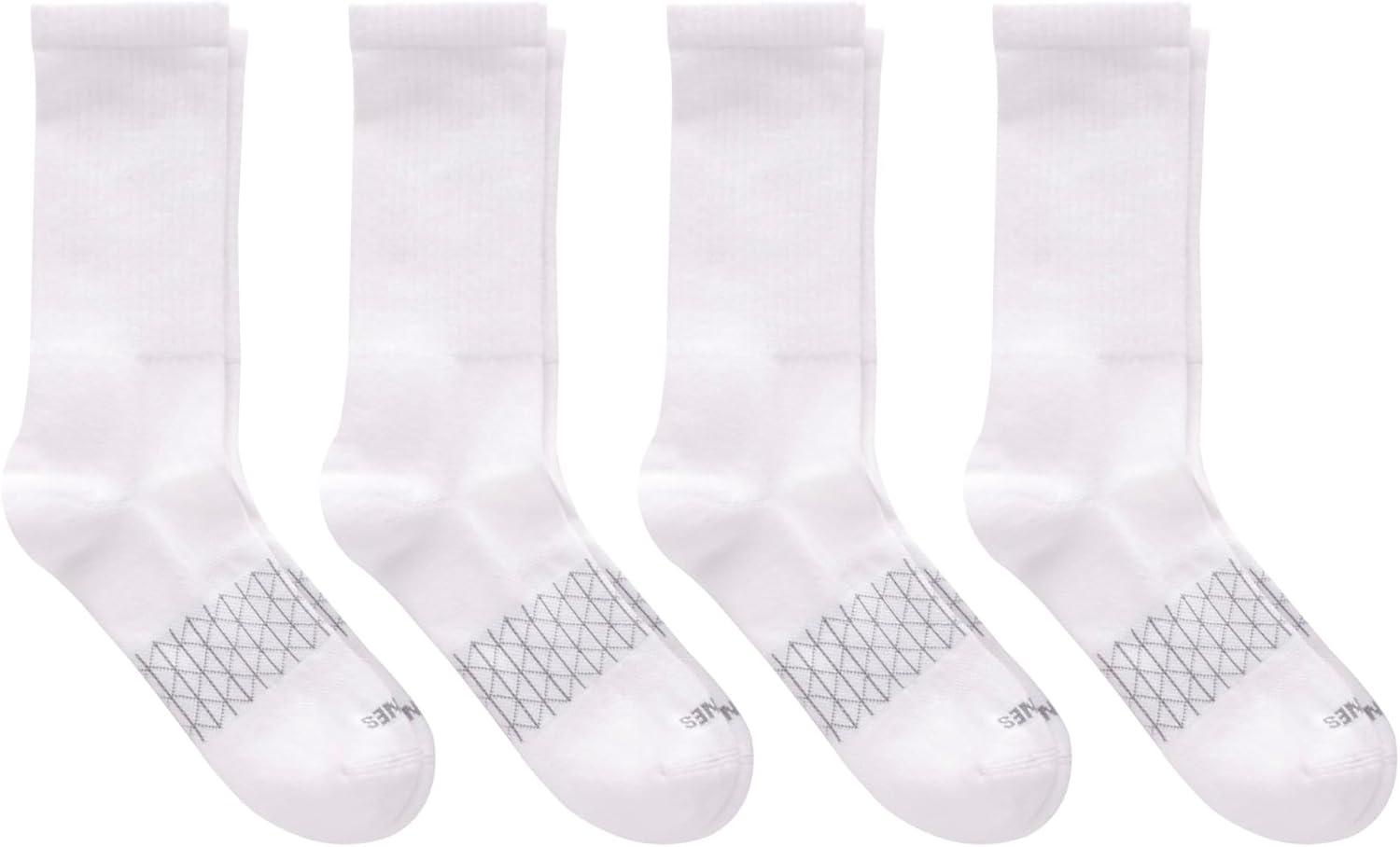 Hanes mens Absolute Active Cushioned Crew Socks, Moisture Wicking Socks, Seamless Toe, 4-pack(White)