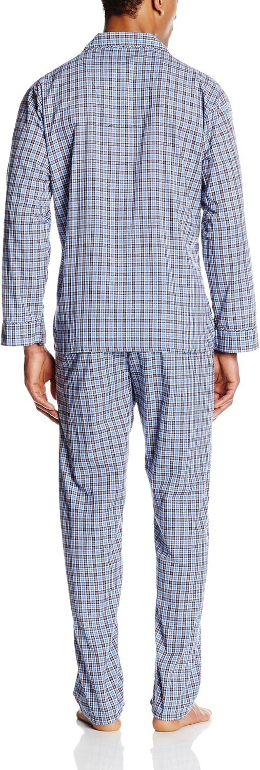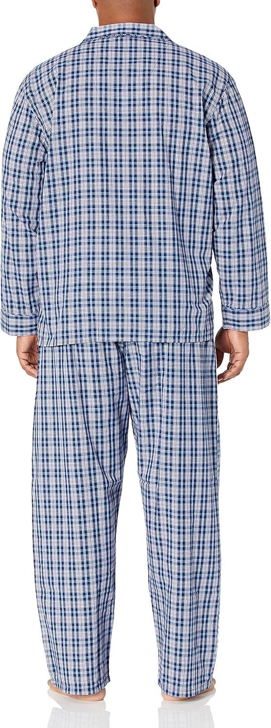 Hanes Men’s Long Sleeve Plain Weave Pajama Set(Blue Plaid)