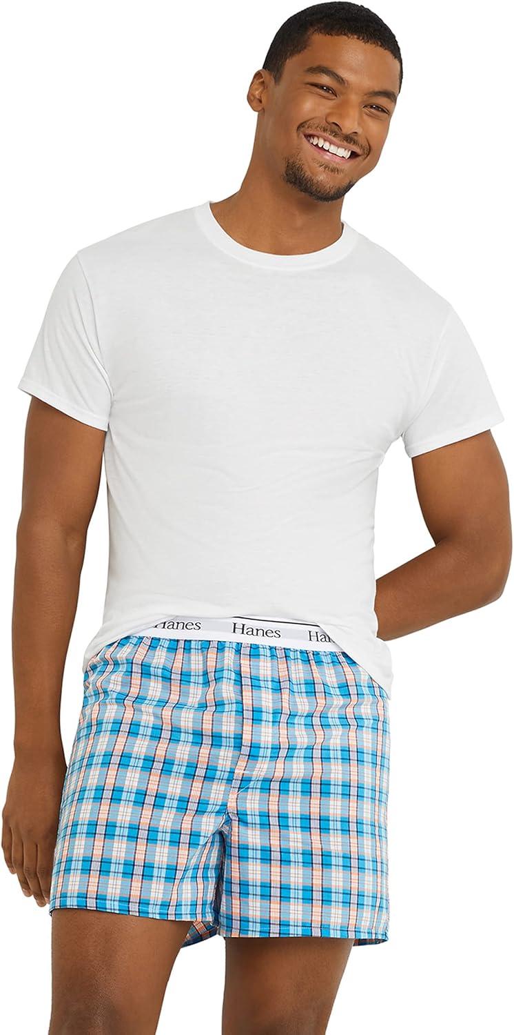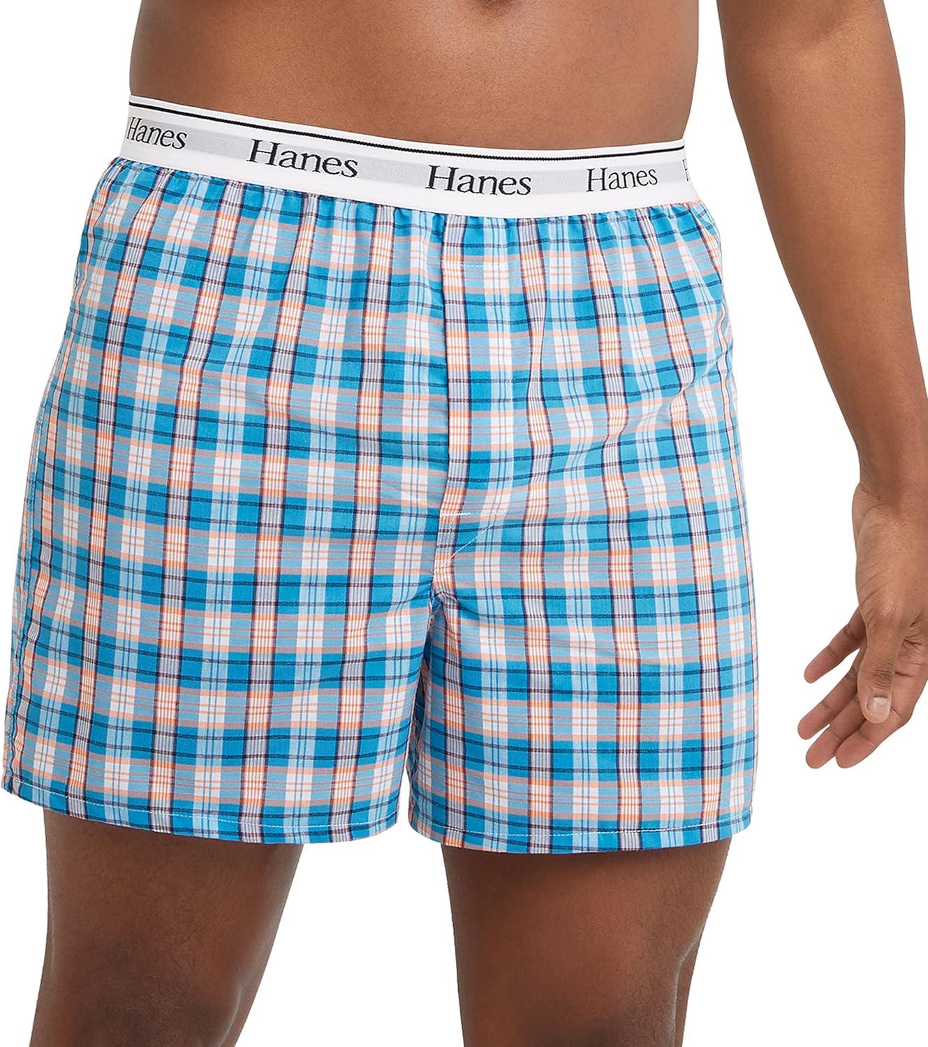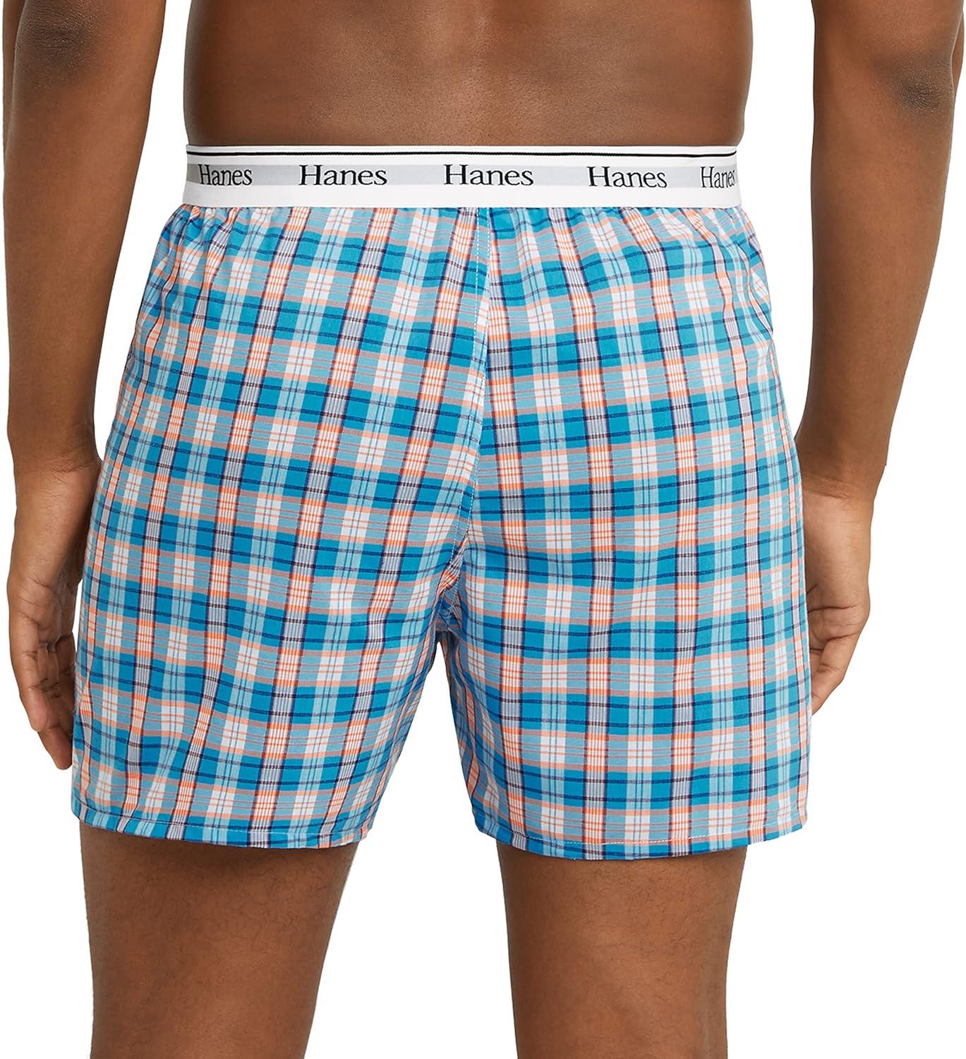 Hanes mens Originals Cotton Woven Boxers Pack, Moisture-wicking Underwear for Men, 3-pack(Blue Plaids)