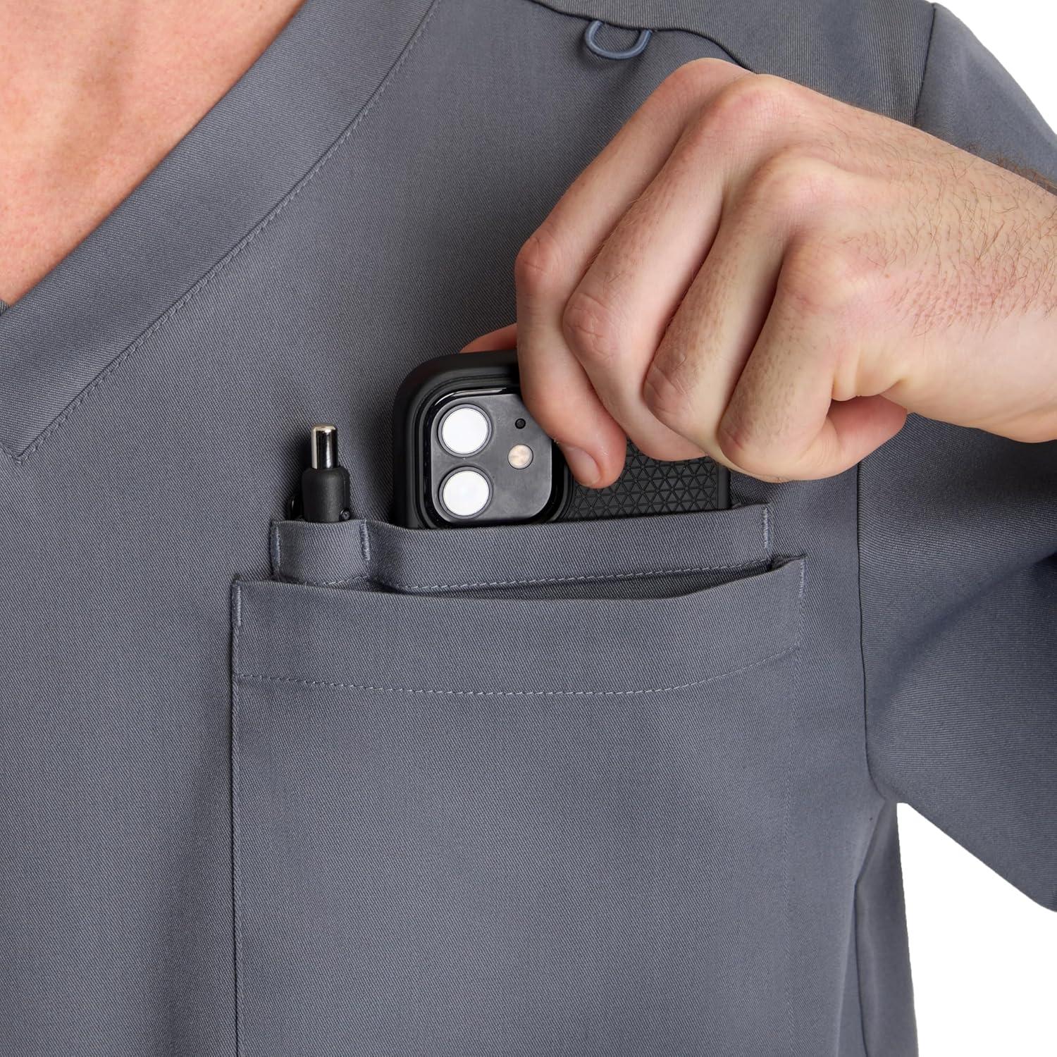 Hanes Mens Scrubs Healthcare Top, Scrub Shirt for Men, Moisture-Wicking & Odor Control, One Pocket(Slate Grey)