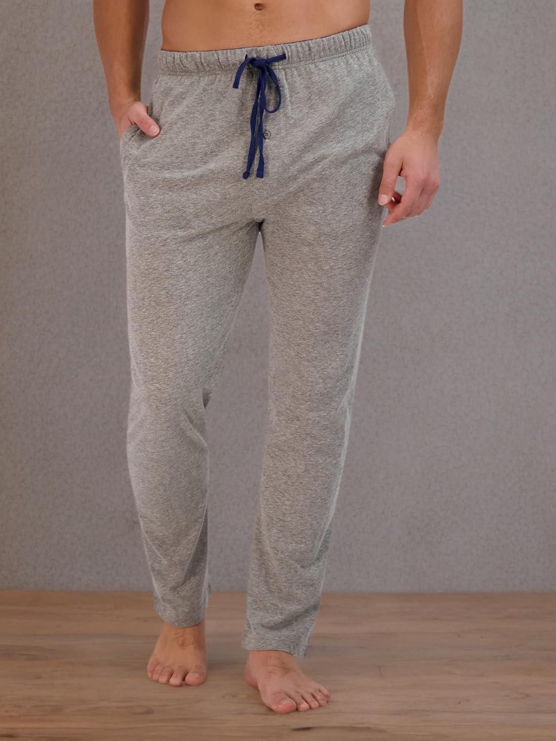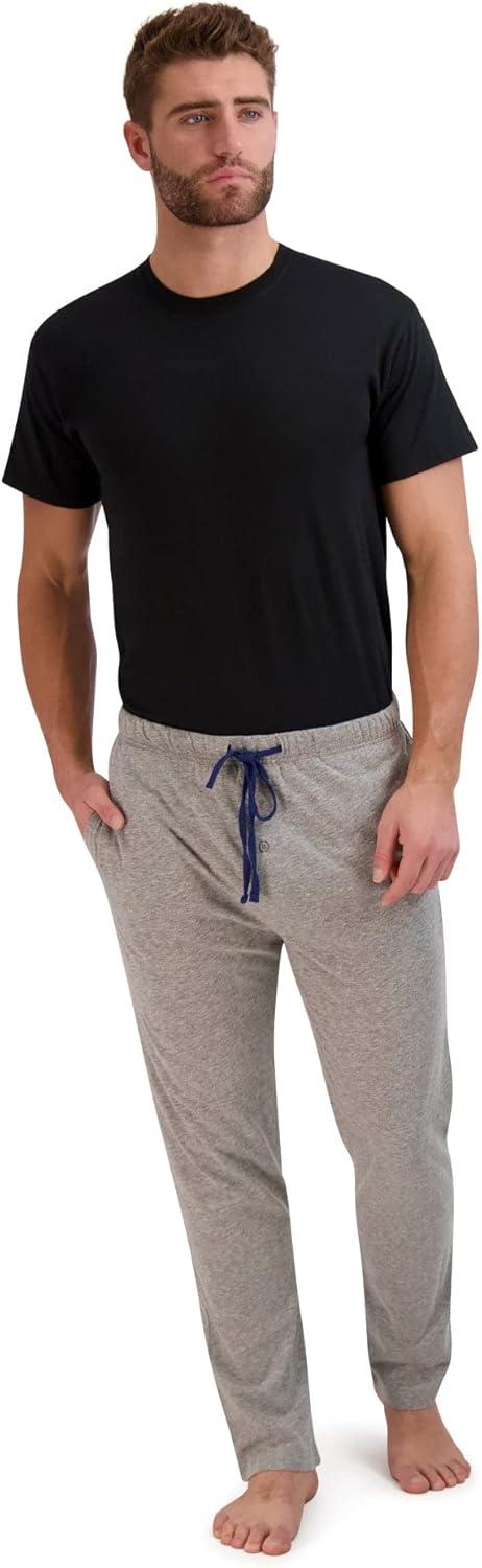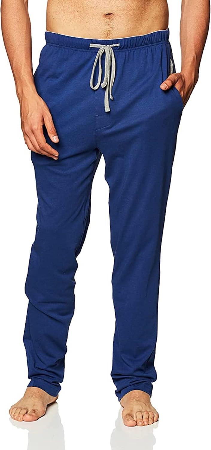 Hanes Men’s Solid Knit Sleep Pant with Pockets and Drawstring(Blue/Active Grey)