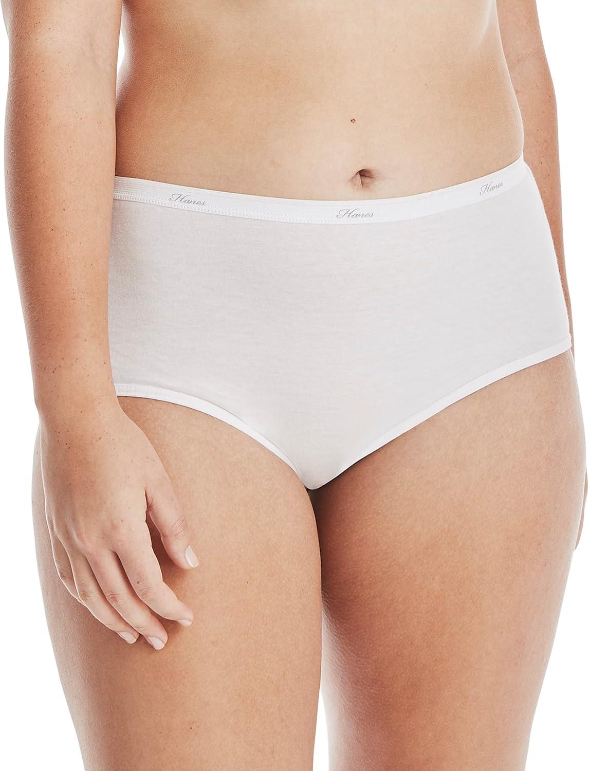 Hanes Women’s High-Waisted Brief Panties, 6-Pack, Moisture-Wicking Cotton Brief Underwear (Colors May Vary)(White)