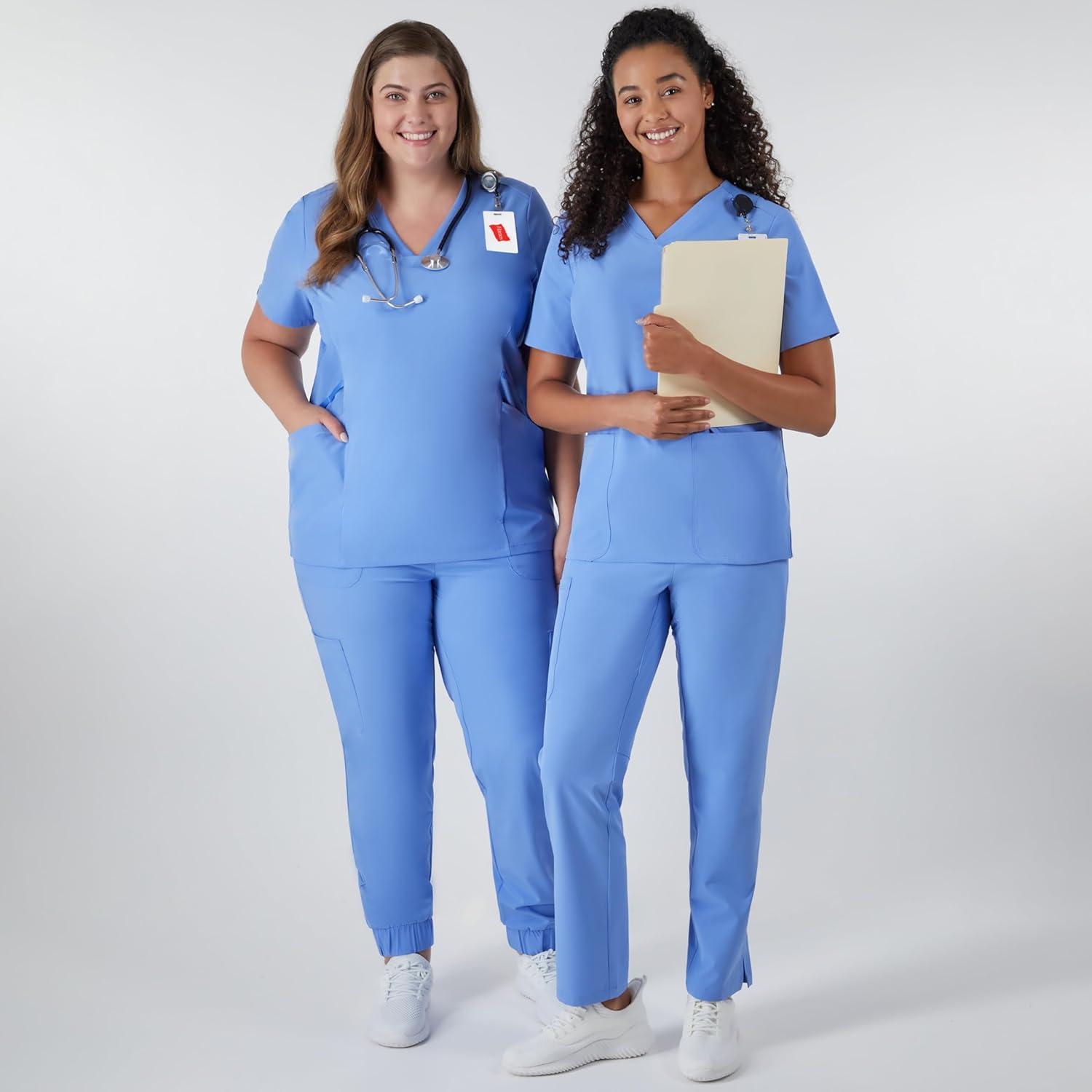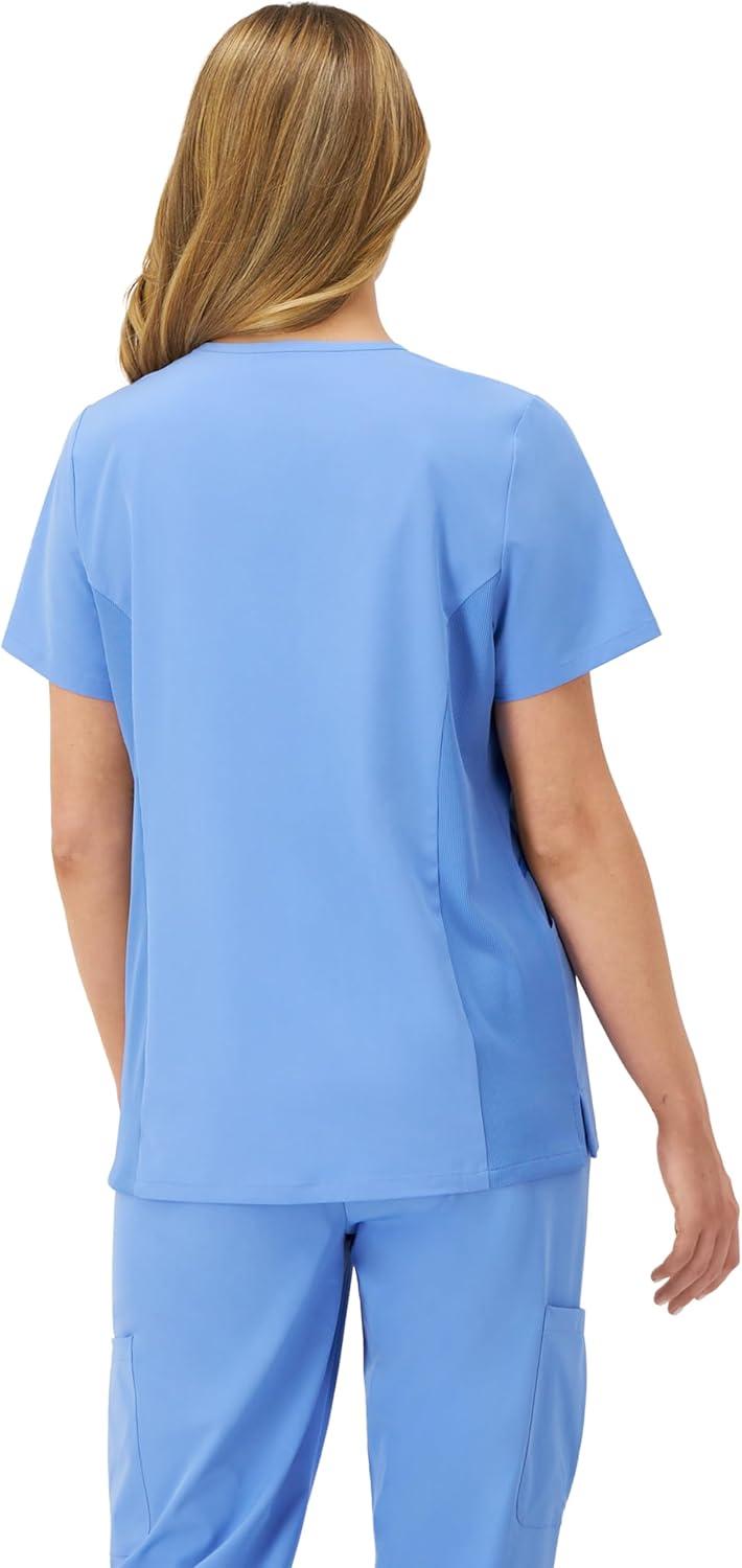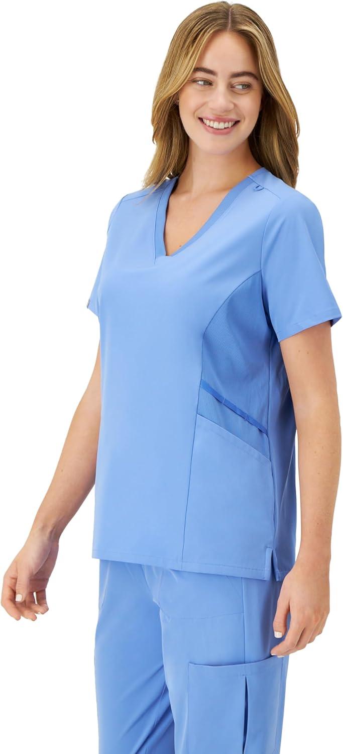 Hanes Women’s Scrubs Healthcare Top, Moisture-Wicking Stretch Scrub Shirts, Ribbed Side Panels(Ceil Blue 2)