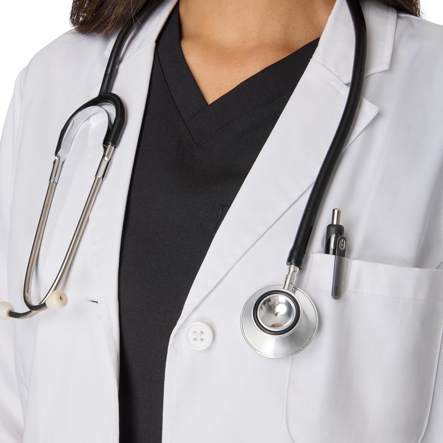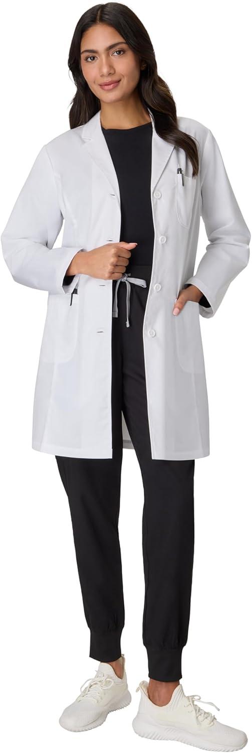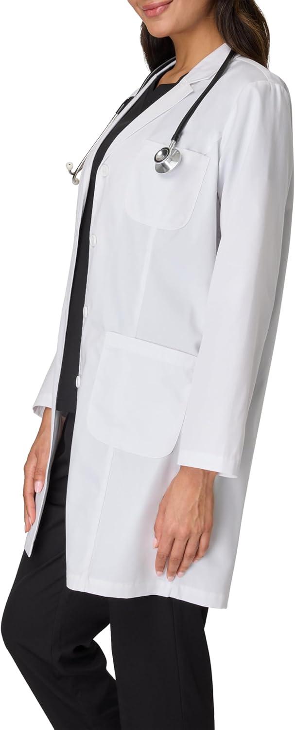 Hanes womens Scrubs Lab Coat, Healthcare Lab Coat, Scrubs Jacket With Pockets, Soil & Water Resistant(Marble White)