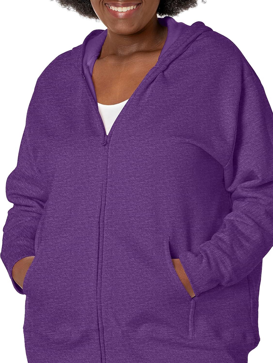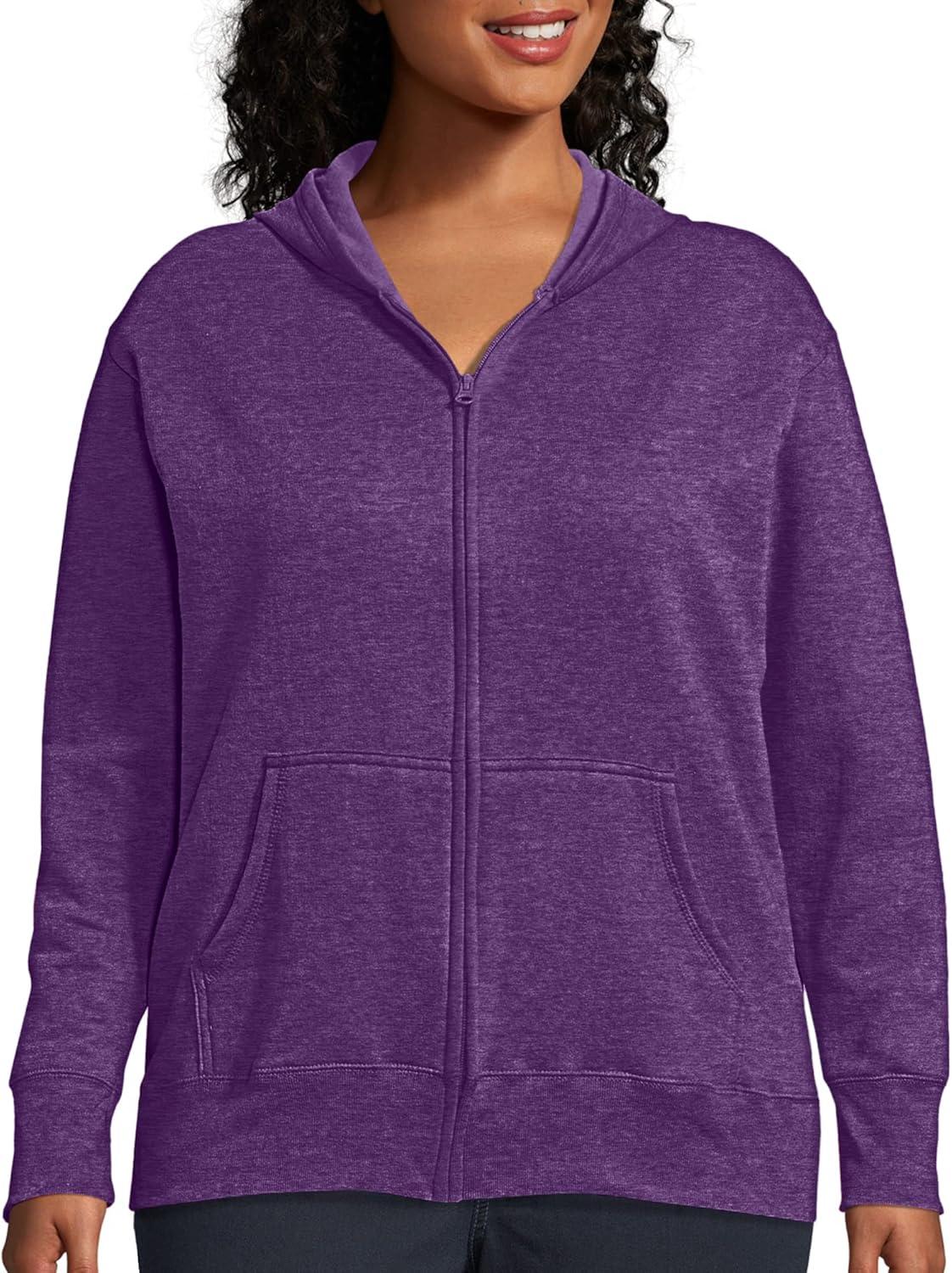 JUST MY SIZE Plus Size ComfortSoft EcoSmart Fleece Full-Zip Women’s Hoodie(Violet Splendor Heather)